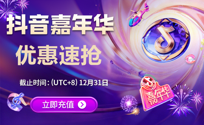 2025抖音嘉年华火爆开启!充值享最高6%折扣,立即为主播打赏,助TA登顶! 点此查看>>